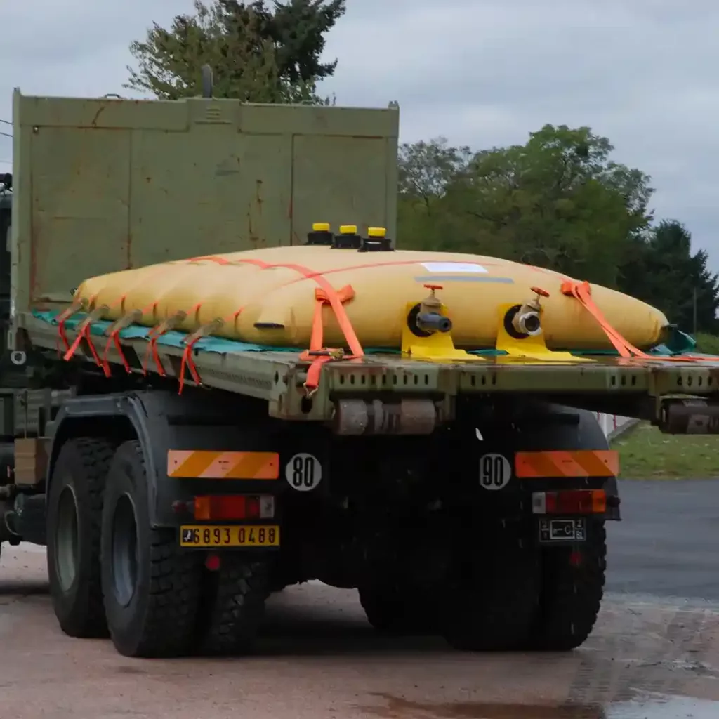 Instalado fácilmente en un camión de plataforma, un contenedor, una barcaza o un avión, el tanque de transporte flexible evita el alquiler o la inmovilización de equipos dedicados. Usted entrega su líquido a un cierto punto. Una vez que el tanque se haya vaciado y doblado, su espacio estará disponible nuevamente y su tanque será reutilizable.